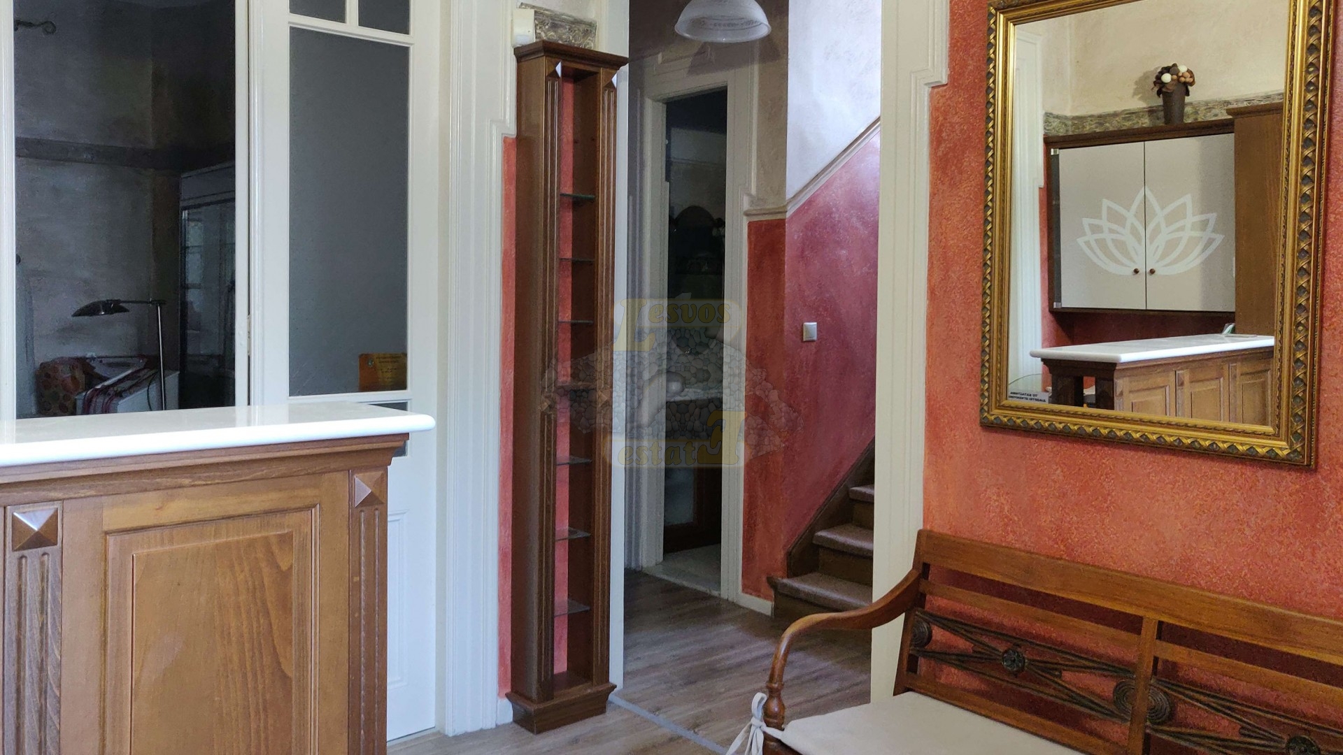 This listed building is located at the center of Mytilene and is housed inside a beauty salon. It consists of two floors with 4 rooms and one WC each. There is a loft with a small WC of 40 square meters for an independent office or for a small bedroom or for a storeroom. There is also a basement of 40 square meters for a storeroom. Finally, there is a warehouse and boiler room of 28 square meters. In each room, there is a fancoil radiator which is connected with the oiler boiler and the cooling unit for the hot months.