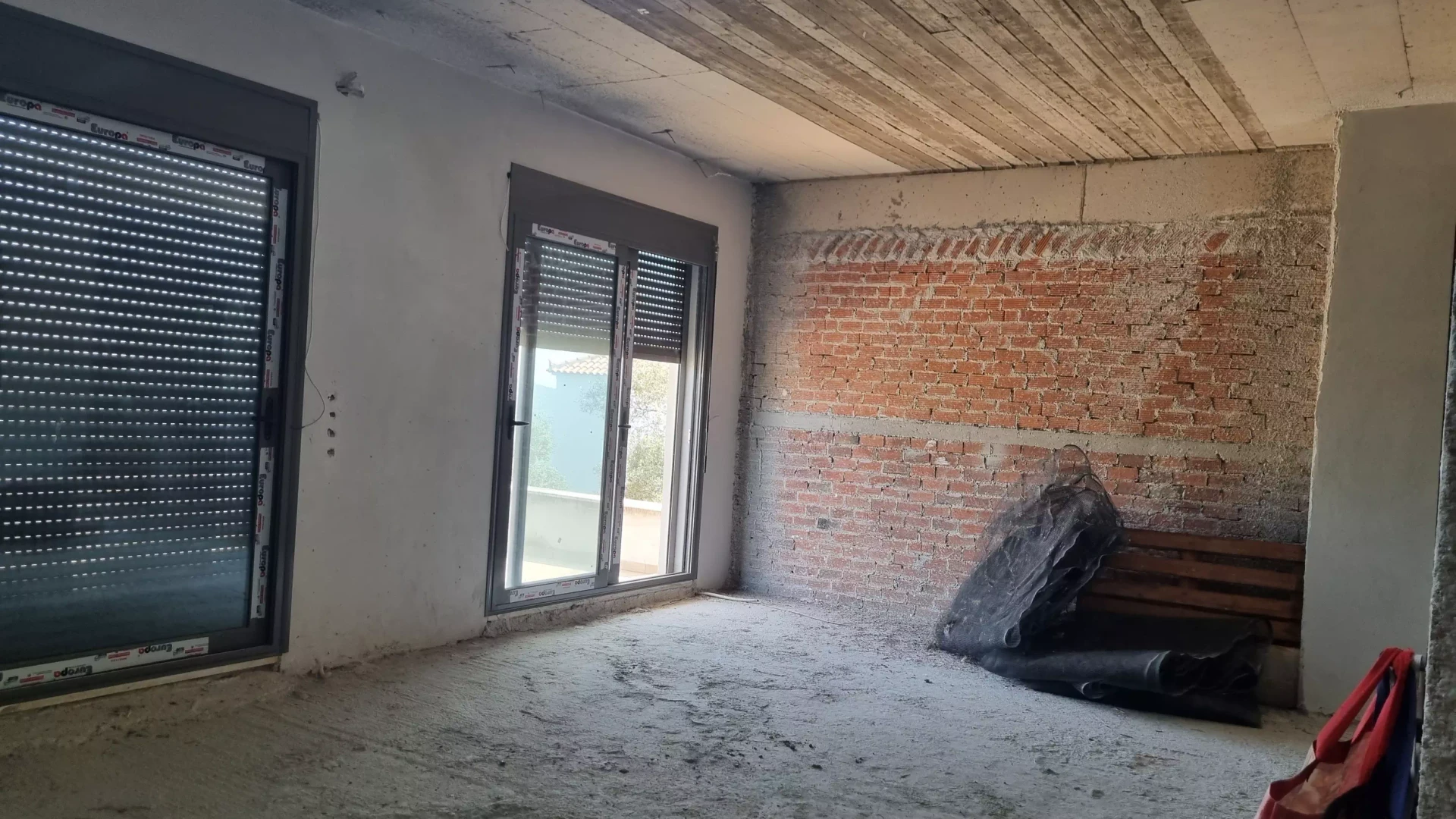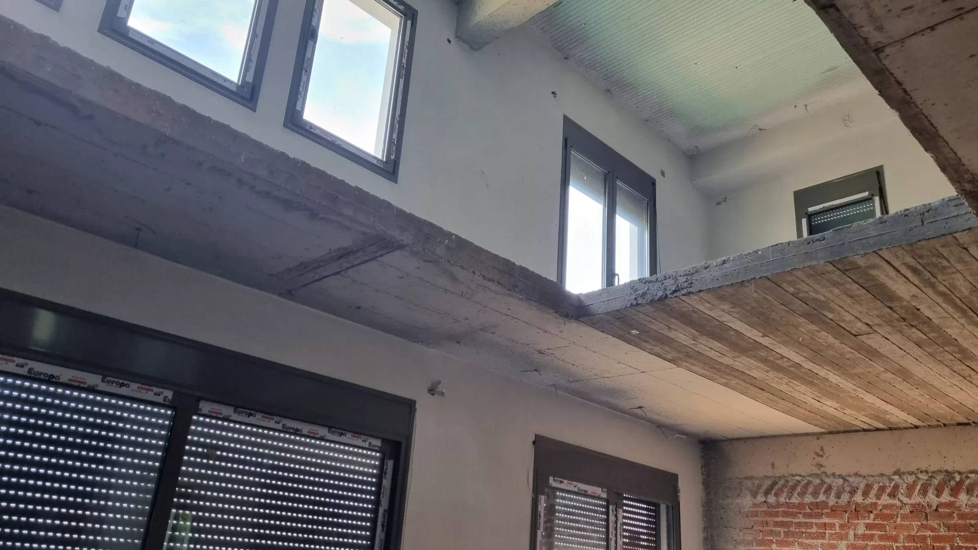 It has ready-made internal brick partitions, as it has been designed to be used either as a single-family house or as two independent apartments that will each have their own independent access to the utility areas.