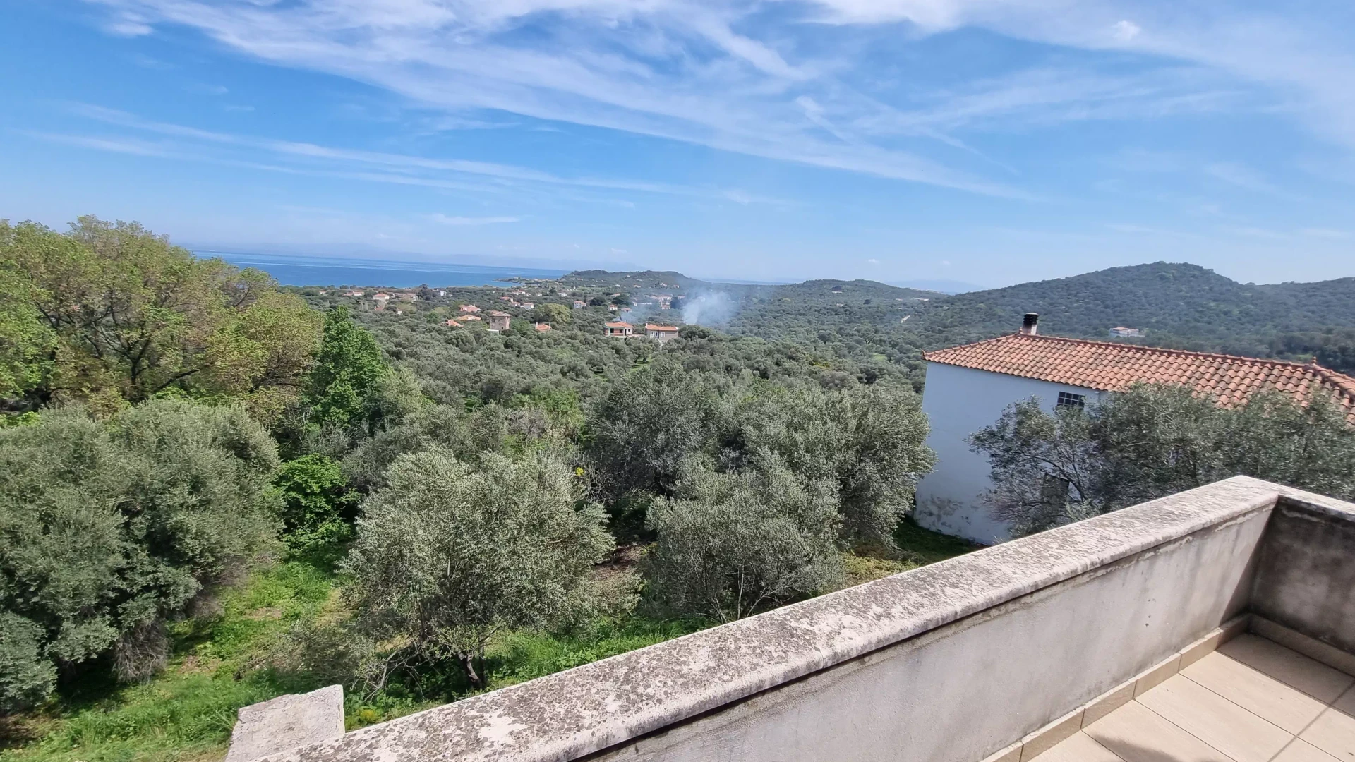 This two-floor detached house has a total area of 215 sq.m. main areas and 115 sq.m. auxiliary spaces. It has a front balcony of almost 60 sq.m., with a 180-degree panoramic view of the sea.