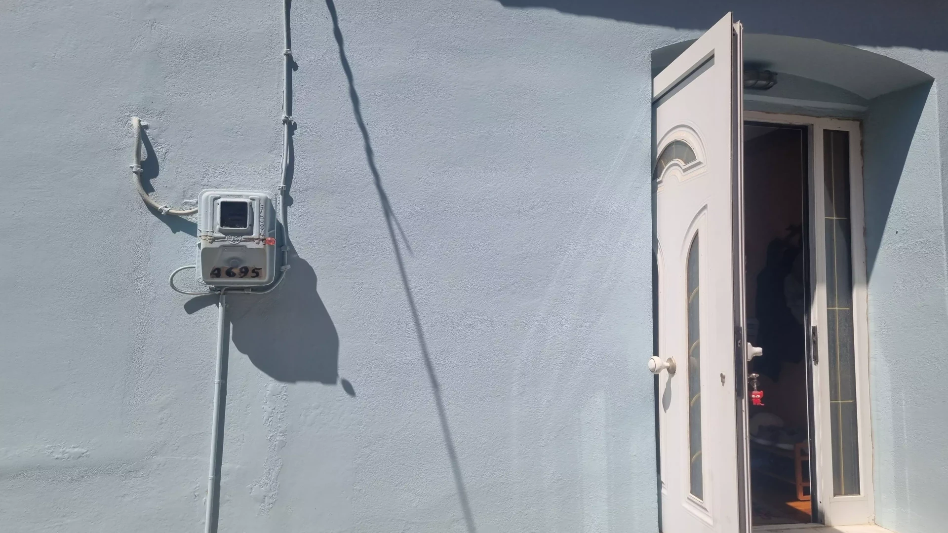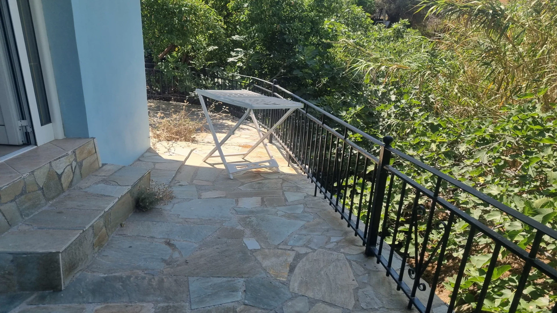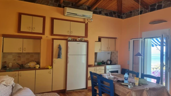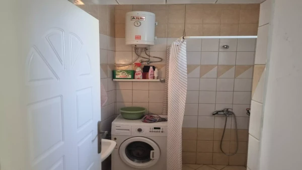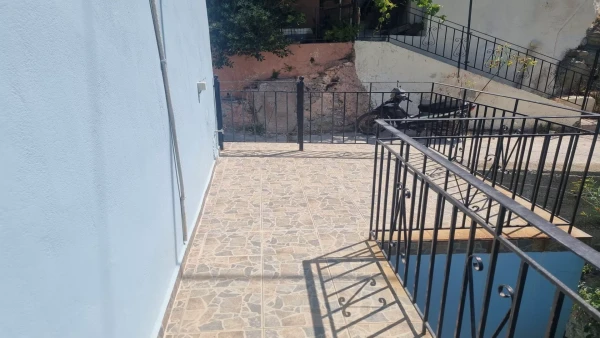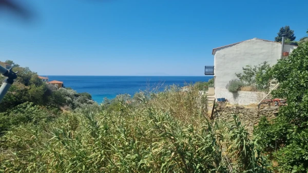 It consists of two floors. On the upper floor is the main entrance and on the ground floor is the kitchen, the living room, one bedroom, one bathroom, one balcony and a terrace. It has a nice view of the sea and is easily accessible by car.